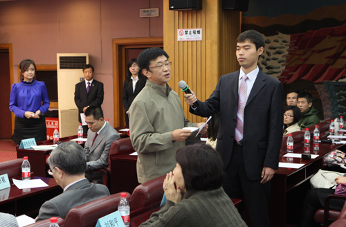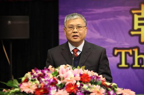 对外经济贸易大学党委副书记杨逢华在颁奖典礼上讲话