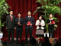 中国人民大学外国语学院院长何其莘为获奖者颁奖